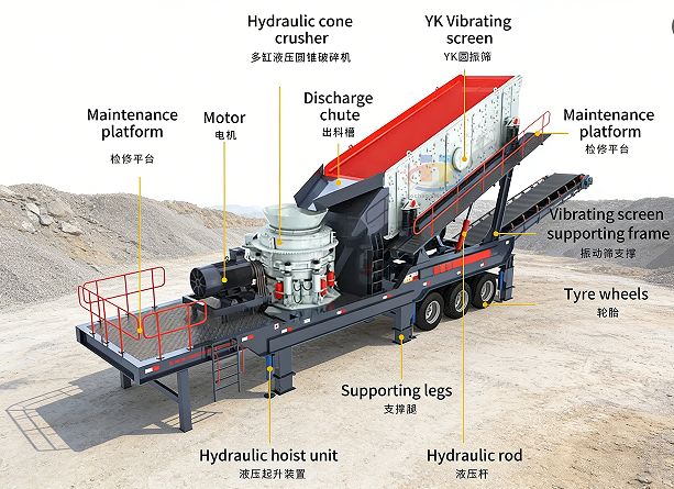 【Application】:Mobile cone crusher is a self-propelled, portable crushing unit that integrates a high-performance cone crusher onto a single chassis.It can be easily relocated around a quarry or between job sites without the need for disassembly and complex installation