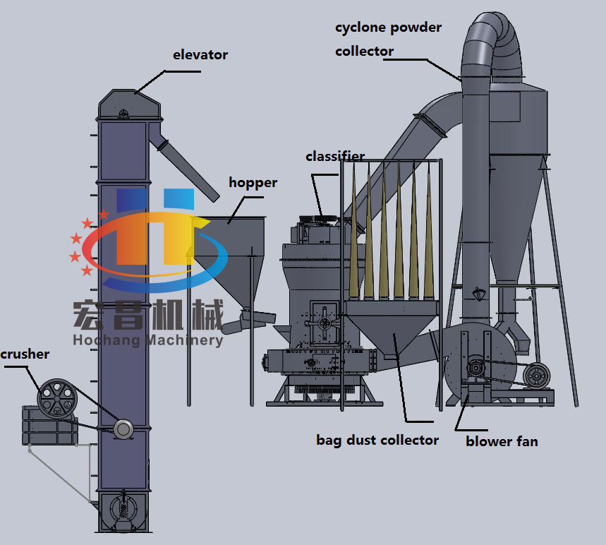 ◆ The whole plant is vertical structure of strong systematic characteristic, so it occupies small area. From crushing of raw material to grinding and packing is an independent production system.