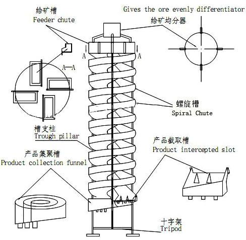 Its handling capacity is big. It is high efficient, concentration ratio and recovery rate. Steel spiral chute is reliable. Besides, it has the following advantages: light weight, moisture, rust, corrosion, no noisy, strong adaptation to fluctuations in the amount, concentration, grain size of the ore.