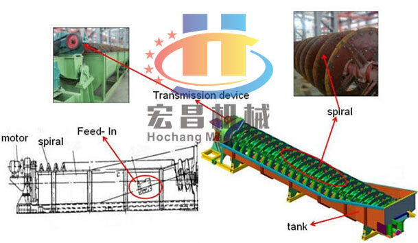 Hochang Spiral sand washing machine is suitable for construction sites, sand factory, hydro power station, concrete dam site, post and telegraph pole factory. The required users’ sand and casting with "70" sand, glass quartz sand, oil filling pressure sand washing, grading and dehydration. Sand washing machine according to 15° tilt arrangement, the lower of the water tank is composed of three side weir plates formed by sedimentation tank. Screw head not into the settling tank, spiral by motor through reducer drive continuous rotation, clean water into the porous plate from the bottom of the tank. This equipment has three functions: cleaning, dewatering, classify.